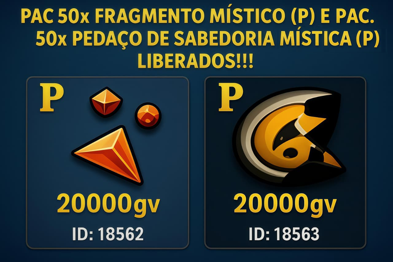 ­Pacotes de 50x Fragmento Místico (P) + 50x Pedaço de Sabedoria Mística (P) disponibilizados na Loja Premium do jogo!